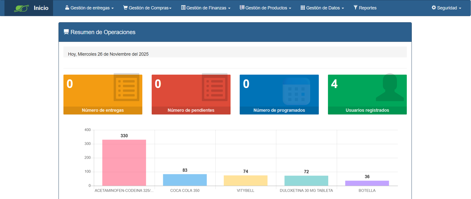 Software web para IPS que automatiza compras, inventarios, entregas, pendientes y programados